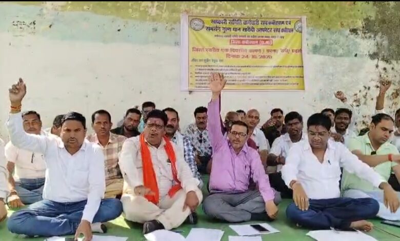 कवर्धा: धान खरीदी से पहले सरकार की मुश्किलें बढ़ीं, समिति प्रबंधक समेत केंद्र के सभी कर्मचारियों ने आंदोलन का बिगुल फूंका।