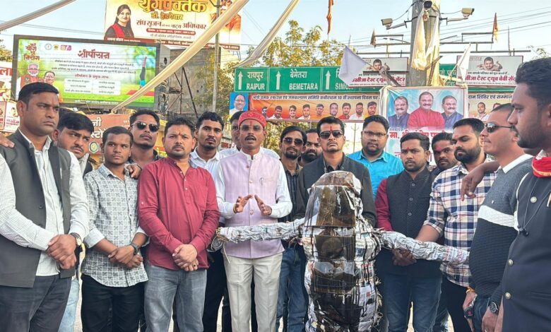 कवर्धा: सनातन विरोधी बयान को लेकर भाजयुमो का विरोध प्रदर्शन, भूपेश बघेल व टीएस सिंहदेव का पुतला दहन।