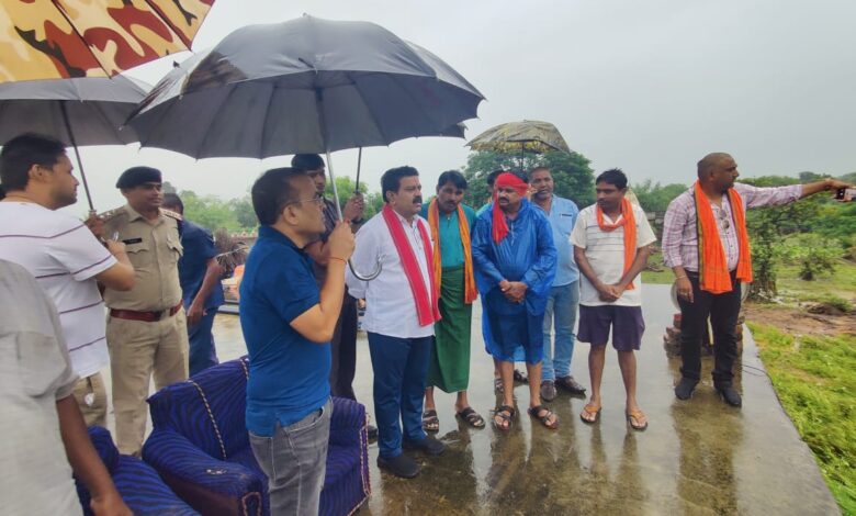 बाढ़ प्रभावित गांव पहुंचे डिप्टी सीएम विजय शर्मा, पिडितों से की मुलाकात, कलेक्टर को नुकसान का सर्वे कराने दिए निर्देश।