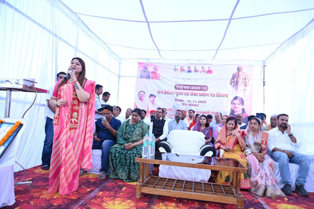 कवर्धा: विधायक भावना बोहरा ने केन केरियर की पूजा कर पंडरिया में शेयर प्रमाण पत्र वितरण एवं गन्ना खरीदी व पेराई सत्र का किया शुभारंभ, सरदार पटेल की प्रतिमा और हनुमान मंदिर स्थापना की भी घोषणा की