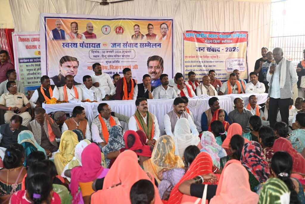बोड़ला में स्वस्थ पंचायत जन संवाद सम्मेलन का हुआ आयोजनकवर्धा: कबीरधाम जिले के बोड़ला में आयोजित स्वस्थ पंचायत जन संवाद सम्मेलन में उप मुख्यमंत्री विजय शर्मा ने कहा कि मितानिनें निस्वार्थ भाव से पूरे गांव को परिवार मानकर उनके स्वास्थ्य के प्रति सजग रहती हैं। उनके प्रयासों से हर पंचायतों में स्वास्थ्य सुविधाओं की व्यापक पहुंच सुनिश्चित होती है। महिलाओं और बच्चों की स्वास्थ्य सुरक्षा में उनका बड़ा योगदान होता है। उपमुख्यमंत्री ने कहा कि प्रधानमंत्री नरेंद्र मोदी के नेतृत्व में महिला सशक्तिकरण की दिशा में ऐतिहासिक निर्णय लिया है जिसके तहत विधानसभा और लोकसभा में महिलाओं के लिए 33 प्रतिशत आरक्षण का प्रावधान किया गया है। आने वाले वर्षों में विधानसभा में महिलाओं की भागीदारी और मजबूत होगी। उन्होंने बताया कि प्रदेश में लगभग डेढ़ लाख पंच और 11 हजार से अधिक सरपंच चुने गए हैं। जनपद पंचायत सदस्यों सहित इन सभी निर्वाचित प्रतिनिधियों में लगभग 55 प्रतिशत महिलाएं हैं, जो महिलाओं की बढ़ती भागीदारी को दर्शाता है।