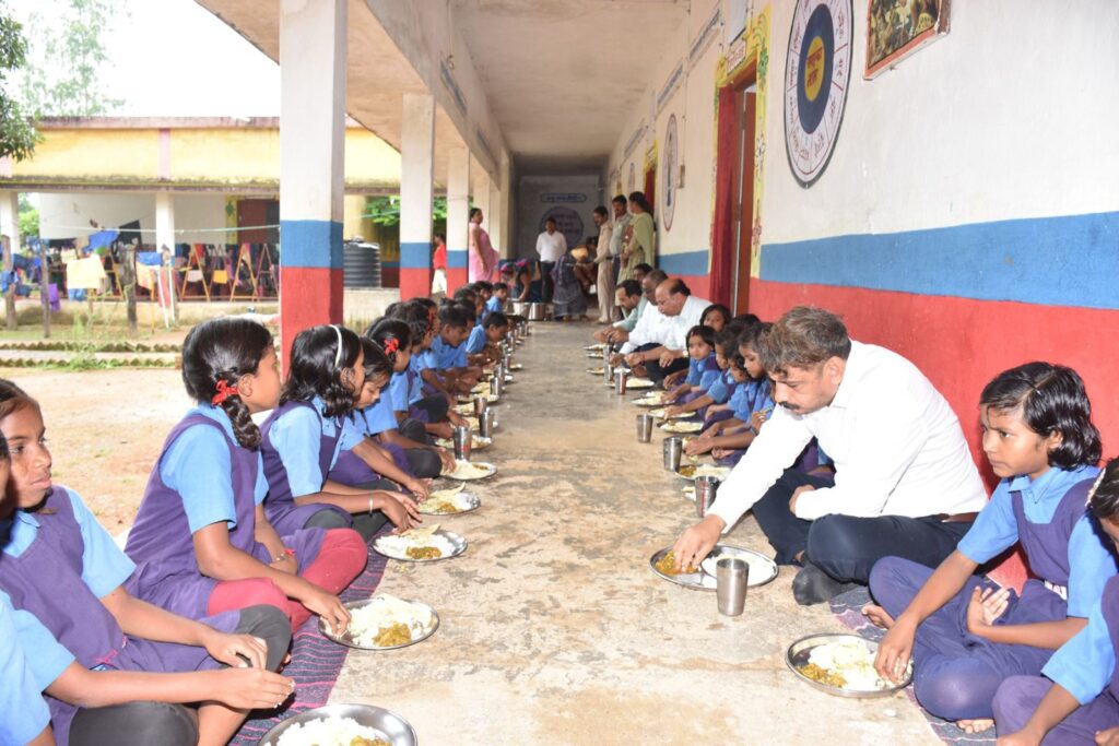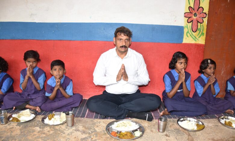 आदिवासी-बैगा बच्चों ने भोजन से पहले मंत्र उच्चारण किया, कलेक्टर ने बच्चों का साथ दिया और एक साथ जमीन पर बैठक भोजन किया