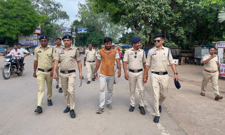 कबीरधाम पुलिस गुंडे-बदमाशों के मन में पुलिस का खौफ बनाने और आम जनता में का न्याय का विश्वास बना रहें इसलिए पुलिस ने आरोपी दीपक चन्द्रवंशी पूरे शहर में पैदल जुलूस निकाला और न्यायालय में पेश किया जहां कोर्ट ने आरोपी को जुडिशल रिमांड पर जेल भेज दिया है।