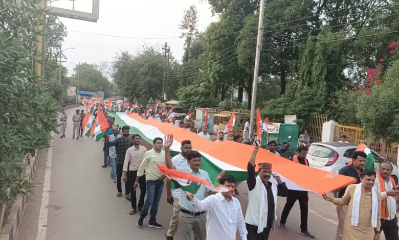 कवर्धा में निकाली गई तिरंगा यात्रा, भारत माता की जाय और हिंदुस्तान जिंदाबाद के नारे से गुंज उठा कवर्धा, हाथों में तिरंगा लेकर रैली में शामिल हुए भूतपूर्व सैनिक, राजनेतिक दल व समाजिक संगठन और बड़ी संख्या में सभी समाज के लोग।
